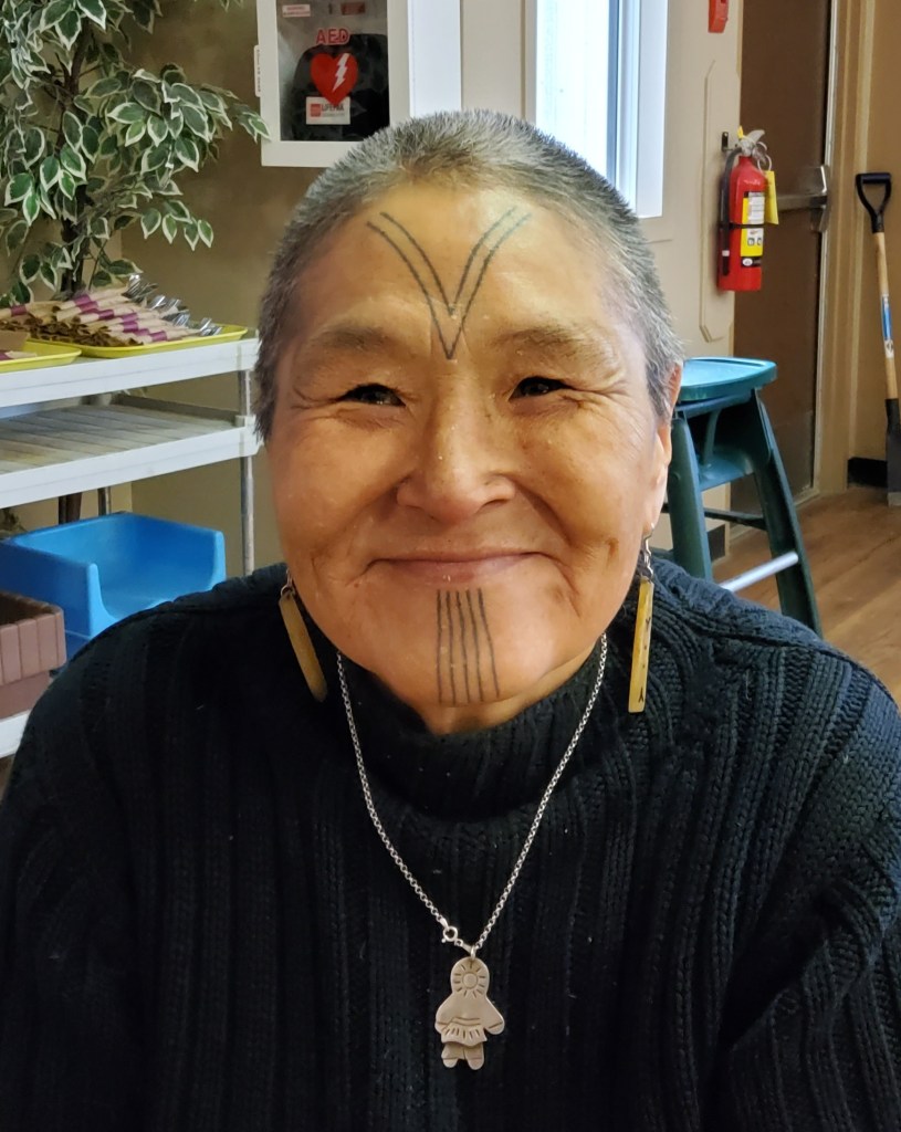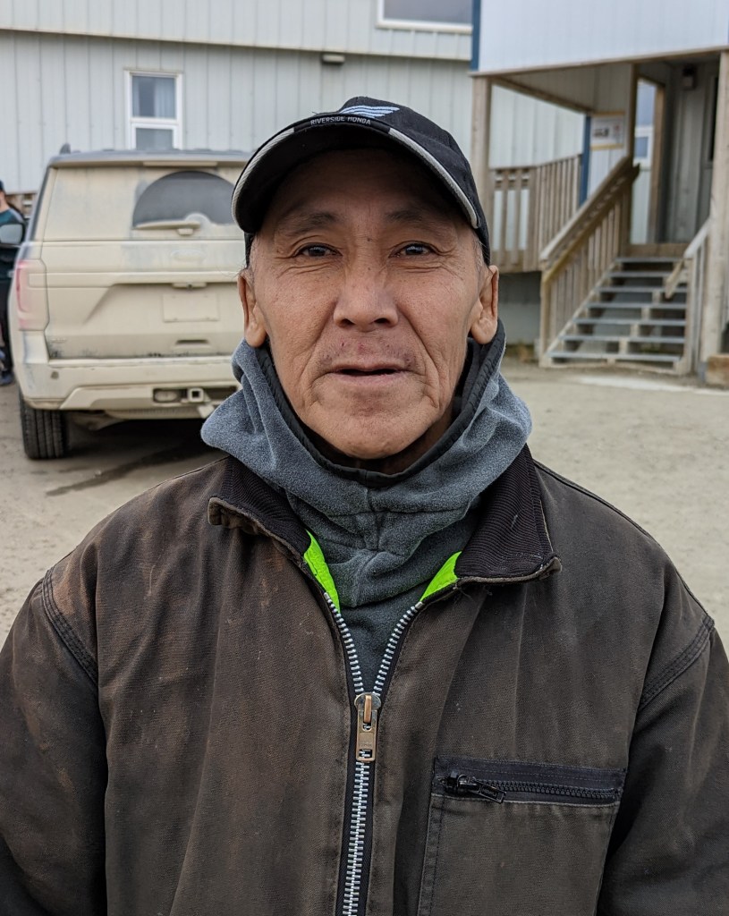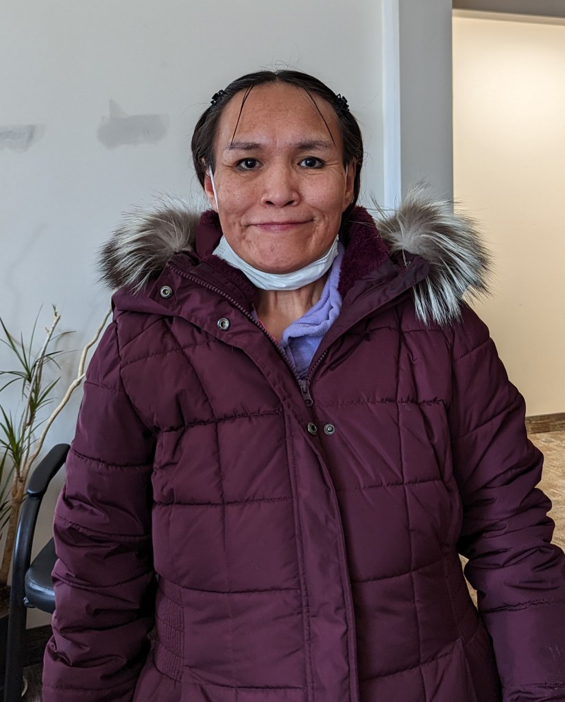 Millie makes all sorts of seal skin earrings and very nice jewellery. She is often helping her family sell their sewing as well. You never know what Millie may have. If you see her walking around or on her Honda, stop her and ask her.